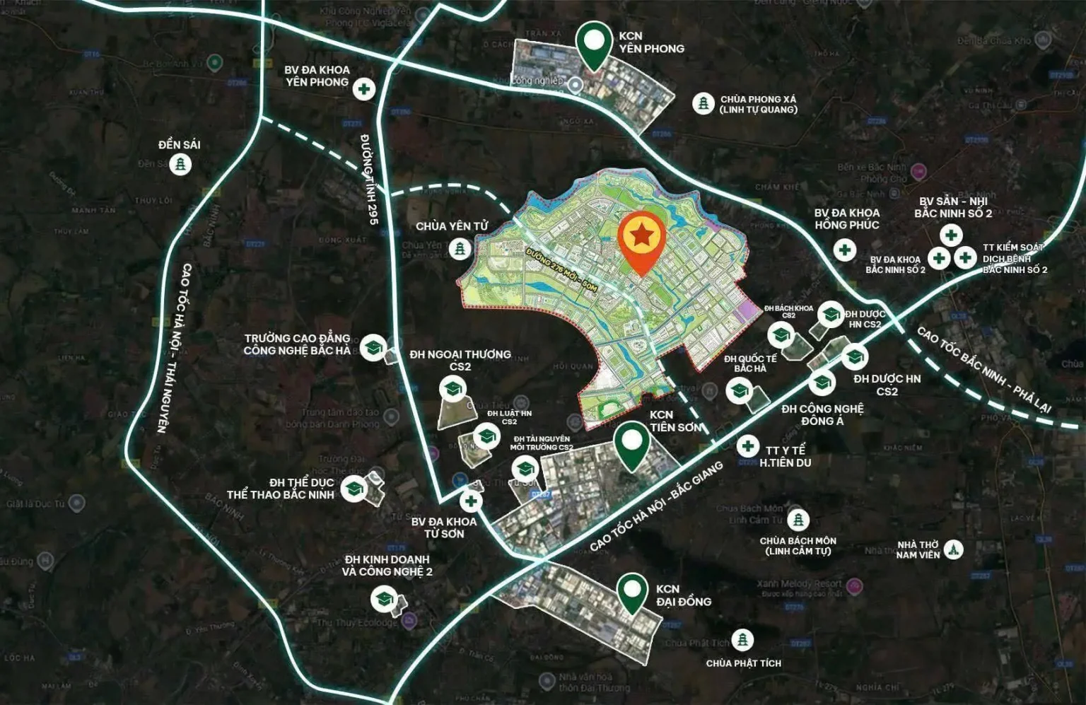 - Trung tâm Hà Nội: Khoảng 30 phút di chuyển qua cao tốc Hà Nội – Bắc Giang, Quốc lộ 1A