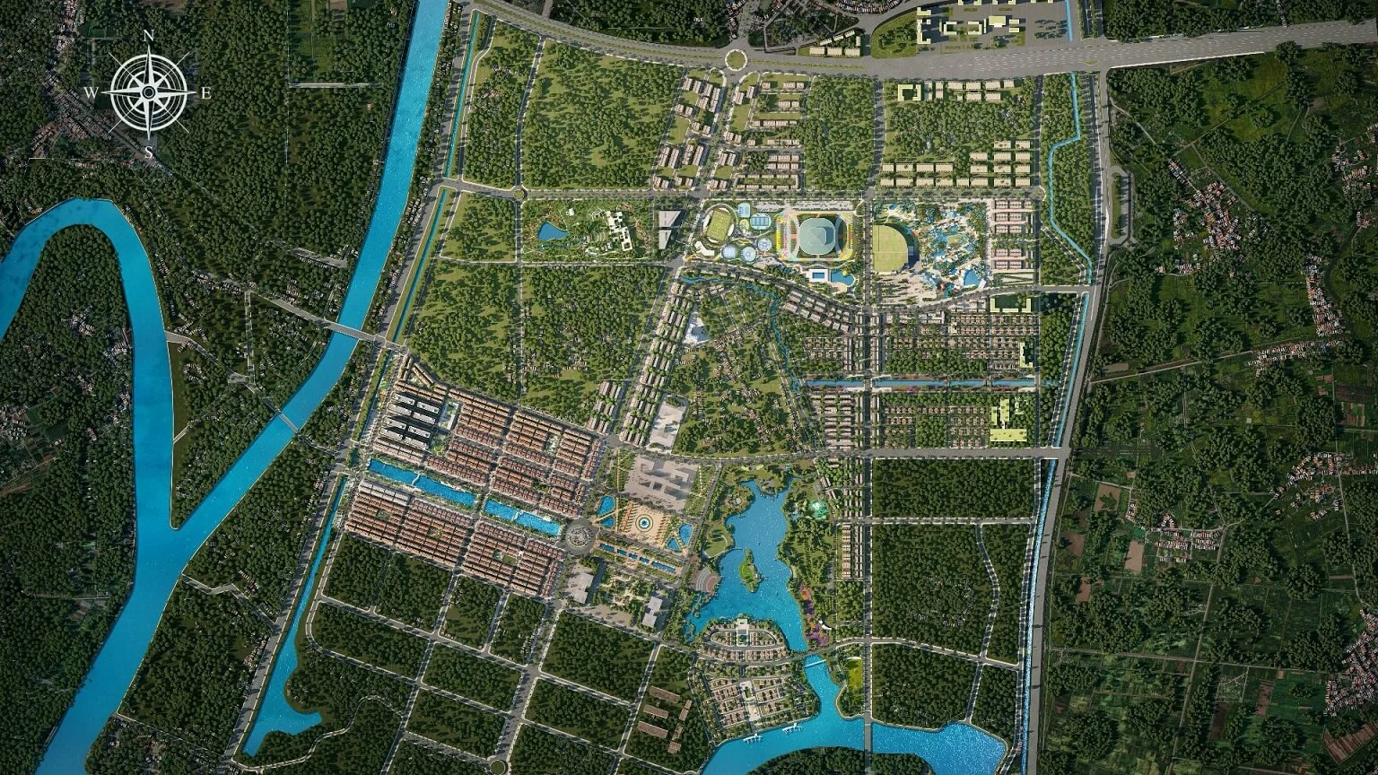 Quy hoạch của dự án tạo ra không gian sống thoáng đãng, trong lành và hài hòa với thiên nhiên. Hệ thống giao thông nội khu được thiết kế đồng bộ, khoa học với các trục đường chính rộng từ 30-40m và đường nội bộ rộng 15-20m, đảm bảo sự lưu thông thuận tiện giữa các phân khu.